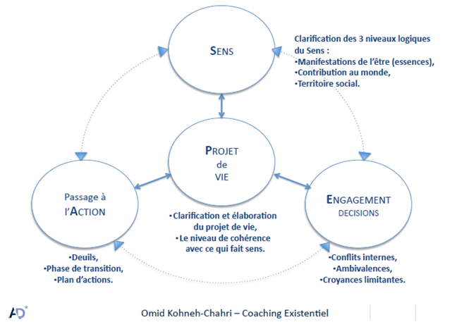 - Focus sur la Méthode SPEA (Sens- Projet-Engagement- Action) mise au point par Omid Kohneh Chahri (formation et livre « le coaching existentiel » aux Editions Dunod) et à laquelle j’ai été formé en 2022 (et approfondissement en 2023).